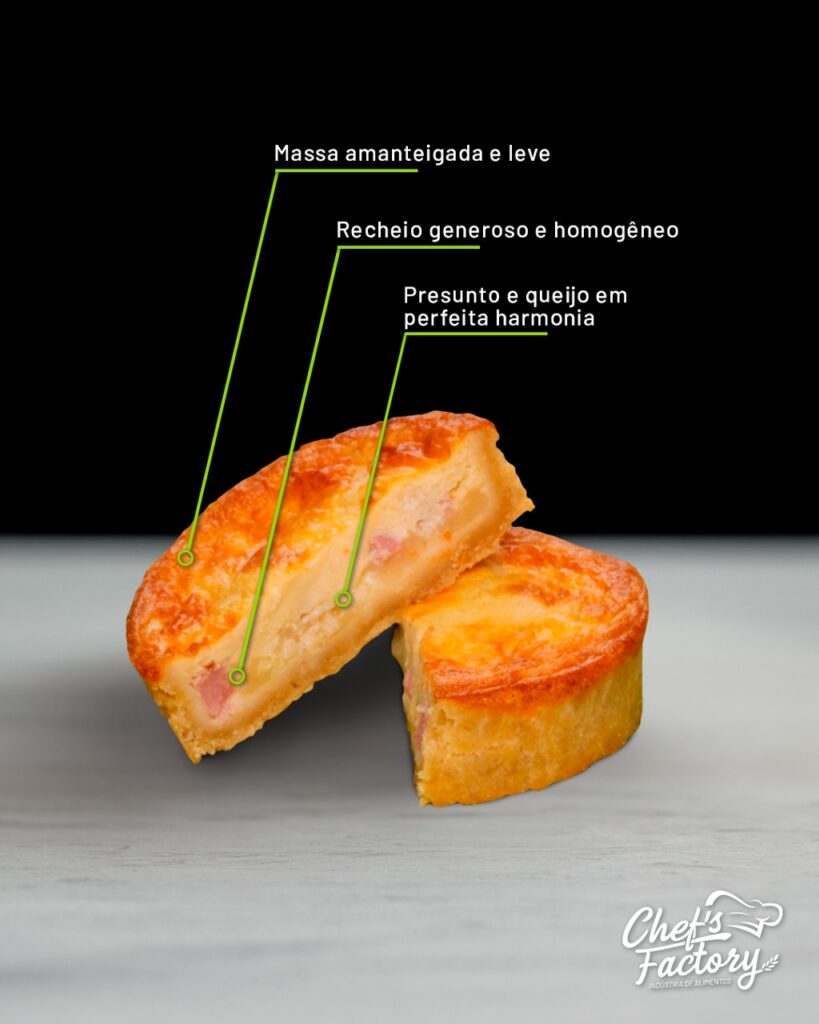 A clássica união de presunto e queijo em um recheio generoso e cremoso, com base de massa brisée crocante e delicada.